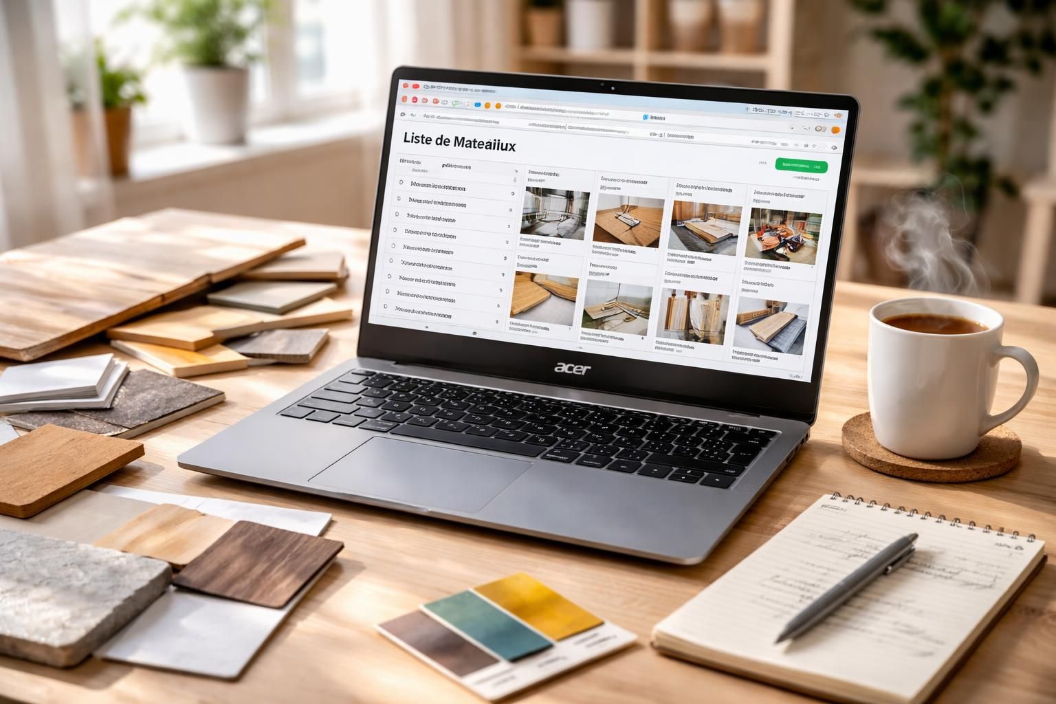 Commander matériaux : shopping-list travaux sur PC portable Acer
