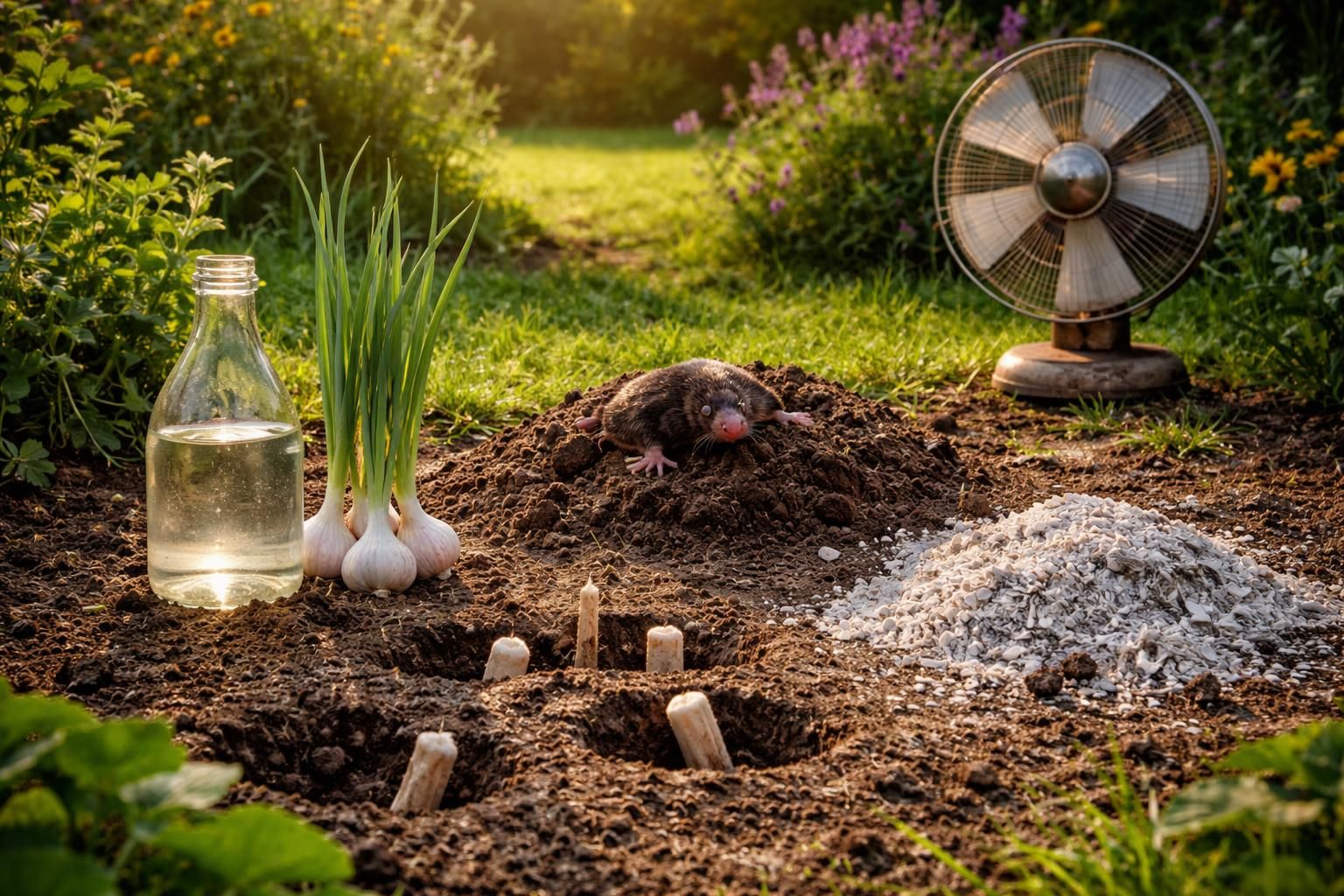 Des astuces pratiques : bouteilles et vibrations pour chasser les taupes