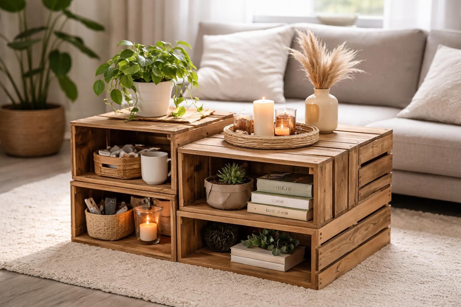 Après avoir récupéré et préparé les caisses, plusieurs options de création s’offrent à vous pour concevoir une table de salon qui reflète votre style personnel.